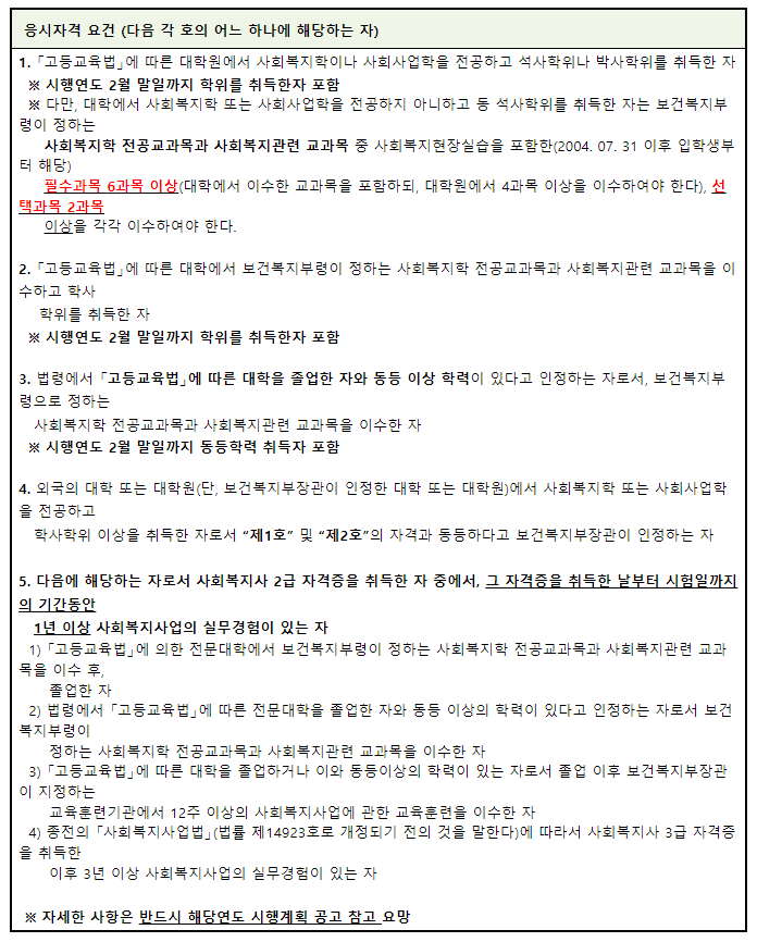 사회복지사 1급 자격시험의 관련부처는 보건복지부이며 시행기관은 한국산업인력공단에서 맡고 있습니다. 시험원서 접수는 Q-net에서 진행할 수 있고 자격증 신청은 한국사회복지사협회에서 할 수 있습니다. 시험과 관련된 자세한 정보는 아래 링크를 클릭 하세요.